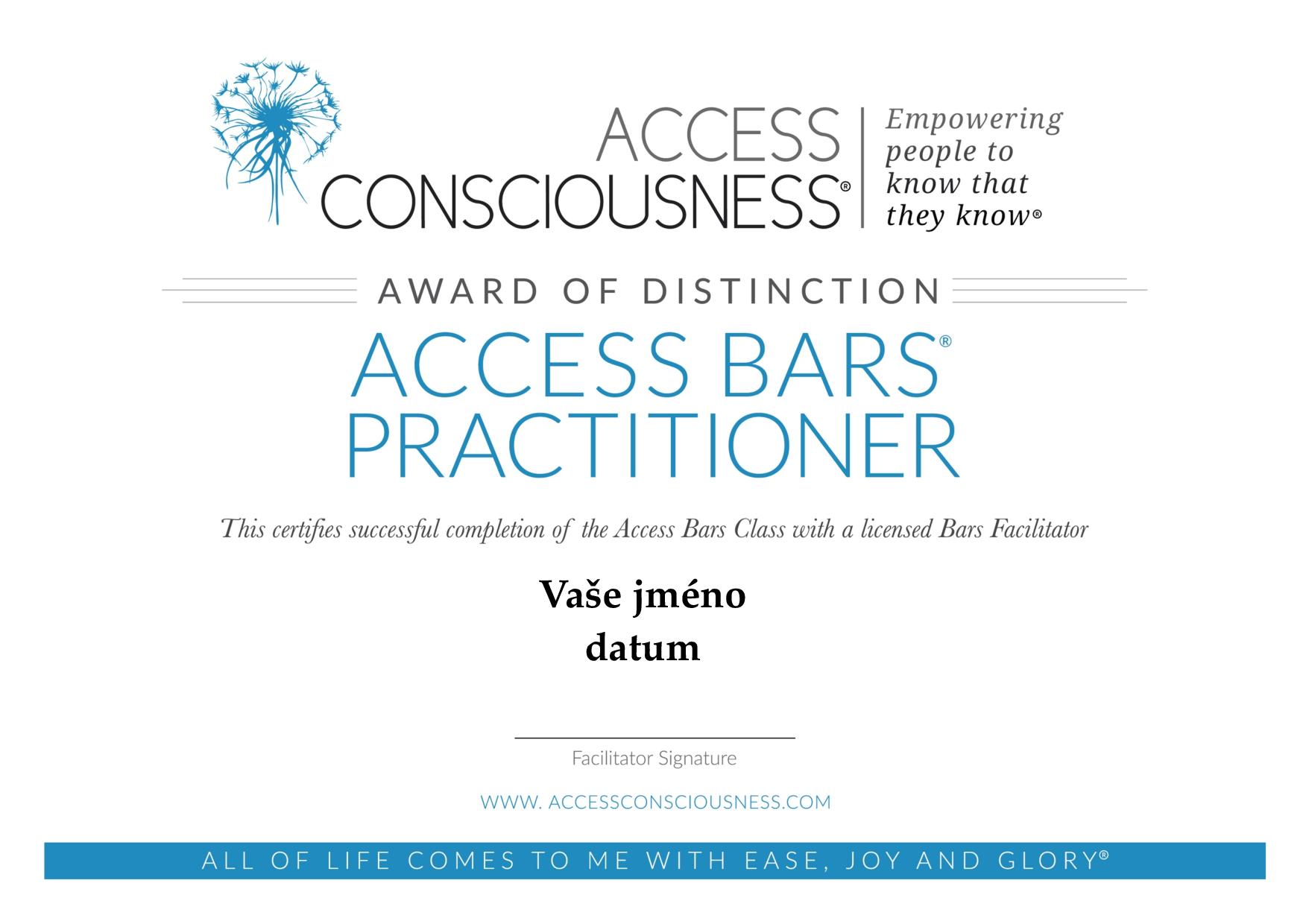 Hned po kurzu se stáváte certifikovaným praktikem metody Access Bars a můžete začít poskytovat sezení a praktikovat. Během celého kurzu kladu důraz na to, aby každý absolvent odcházel s pocitem, že techniku s přehledem a jistotou zvládá a umí ji praktikovat. Svou vlastní zkušenost a prožitky vám nejde předat, mohu vám ale zprostředkovat vaše vlastní.